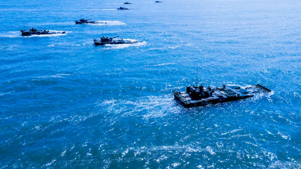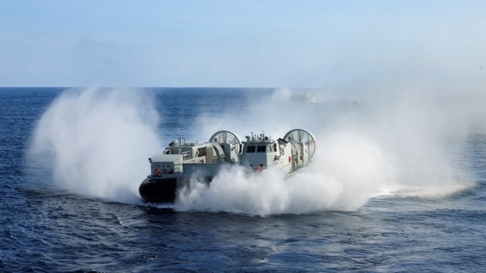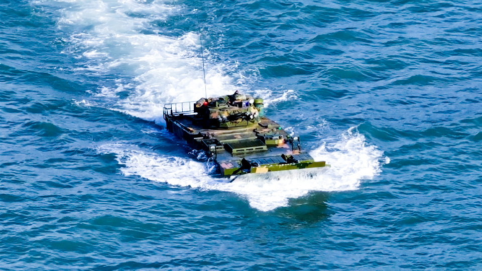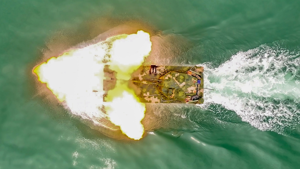 Amphibious infantry fighting vehicle (IFV) maneuvers at high speed