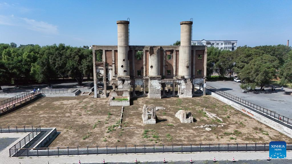 An aerial drone photo shows the former site of the Unit 731 in Harbin, northeast China's Heilongjiang Province, Aug. 15, 2025.