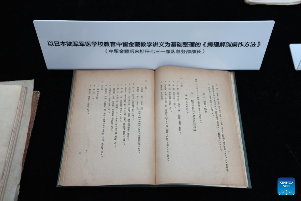 This photo shows the new evidence of Unit 731 unveiled by the Exhibition Hall of Evidences of Crime Committed by Unit 731 of the Japanese Imperial Army in Harbin, northeast China's Heilongjiang Province, Aug. 15, 2025.