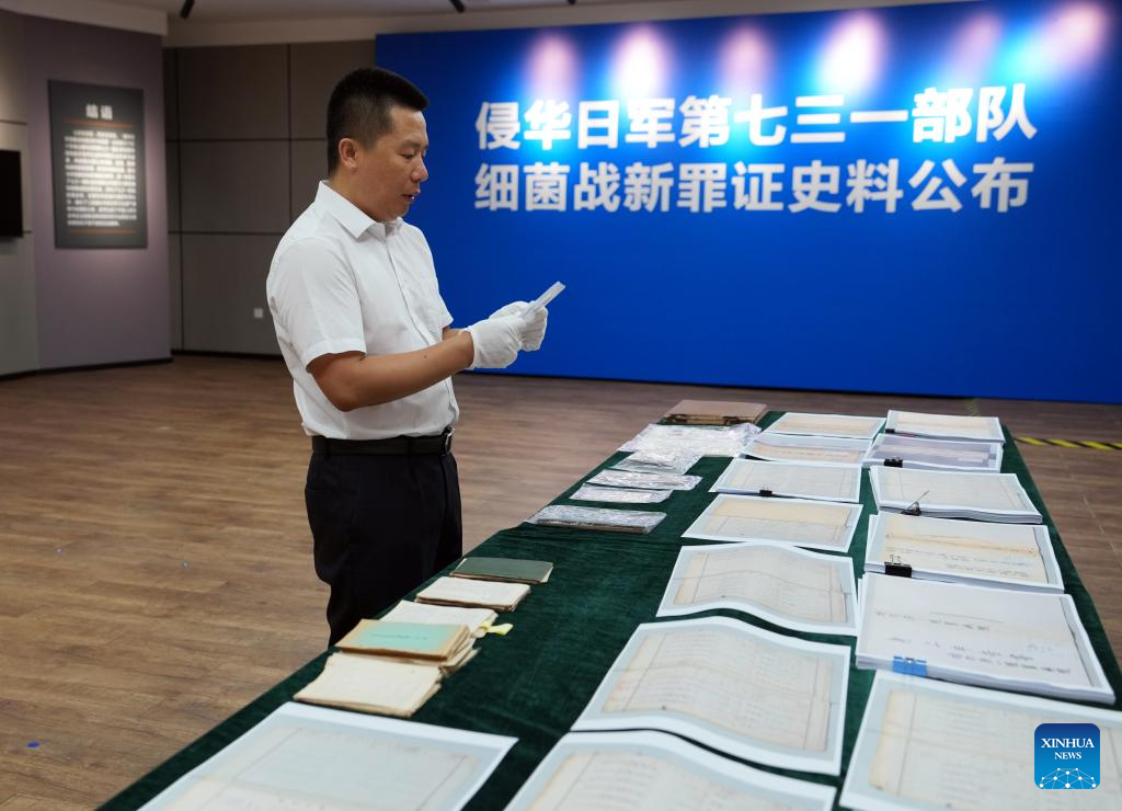 The unveiling of new evidence of Unit 731 is held at the Exhibition Hall of Evidences of Crime Committed by Unit 731 of the Japanese Imperial Army in Harbin, northeast China's Heilongjiang Province, Aug. 15, 2025.