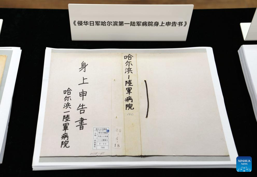 This photo shows the new evidence of Unit 731 unveiled by the Exhibition Hall of Evidences of Crime Committed by Unit 731 of the Japanese Imperial Army in Harbin, northeast China's Heilongjiang Province, Aug. 13, 2025.