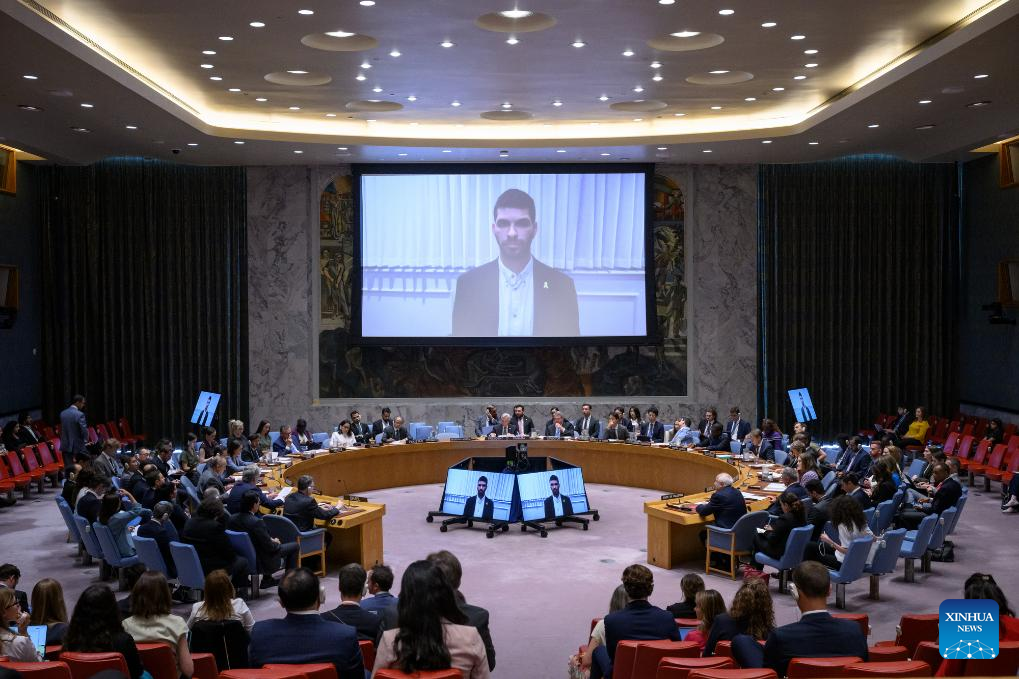 The UN Security Council holds a meeting on the situation in the Middle East, including the Palestinian question, at the UN headquarters in New York, on Aug. 5, 2025. UN Assistant Secretary-General for Europe, Central Asia and the Americas Miroslav Jenca on Tuesday warned against the possible expansion of Israeli military operations through the Gaza Strip. (Loey Felipe/UN Photo/Handout via Xinhua)