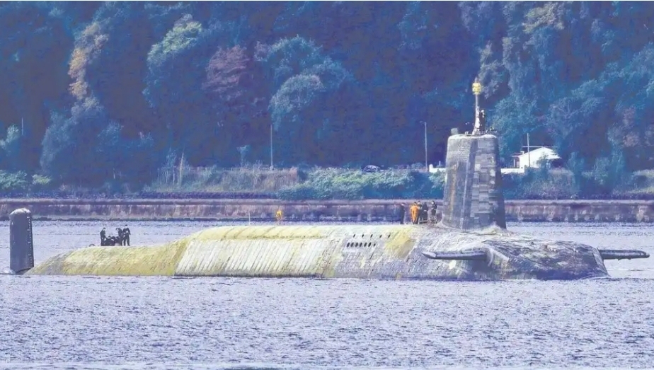 A Vanguard-class nuclear submarine with the US-made Trident II D5 submarine-launched ballistic missile returns from patrol.