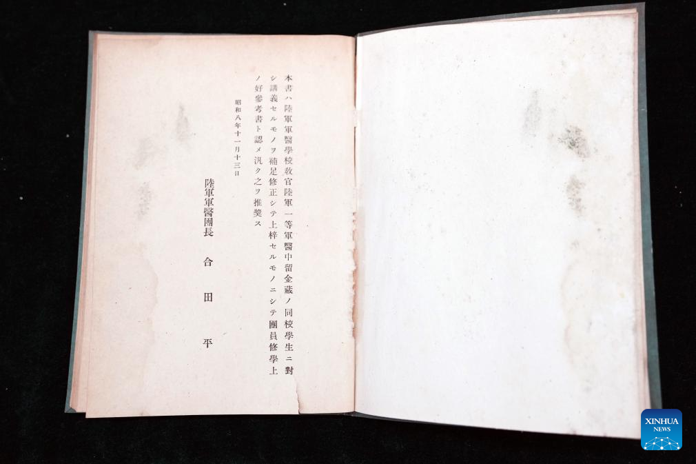 This photo shows the new evidence of Unit 731 unveiled by the Exhibition Hall of Evidences of Crime Committed by Unit 731 of the Japanese Imperial Army in Harbin, northeast China's Heilongjiang Province, Aug. 15, 2025.