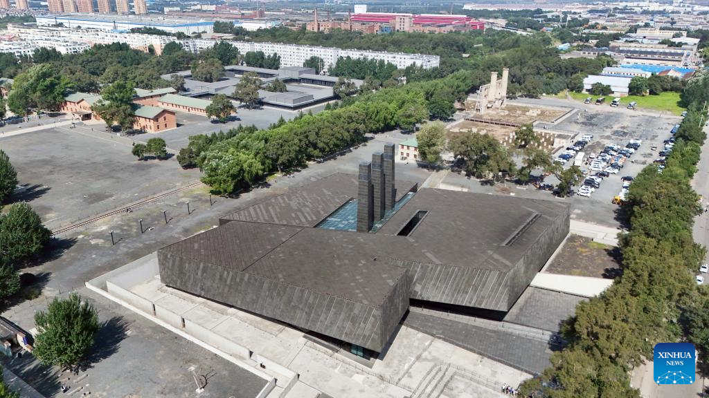 An aerial drone photo shows the Exhibition Hall of Evidences of Crime Committed by Unit 731 of the Japanese Imperial Army and the former site of the Unit 731 in Harbin, northeast China's Heilongjiang Province, Aug. 15, 2025.
